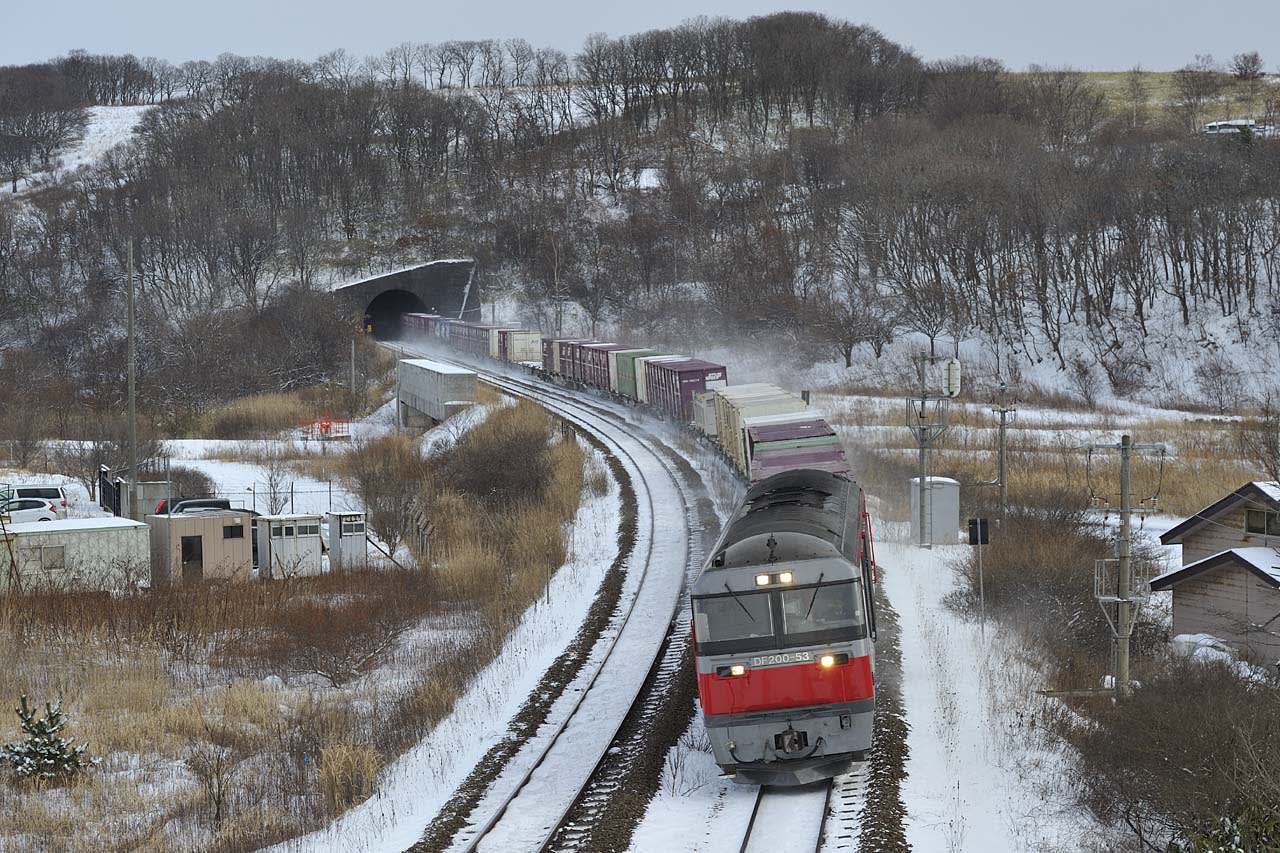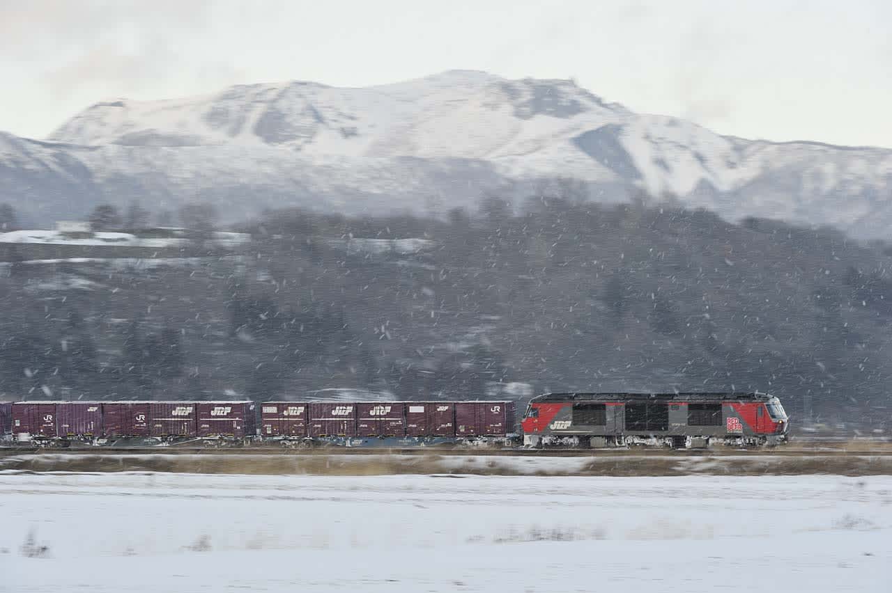 有珠山バックに3067レ(DF200-107)を軽く流し撮り。