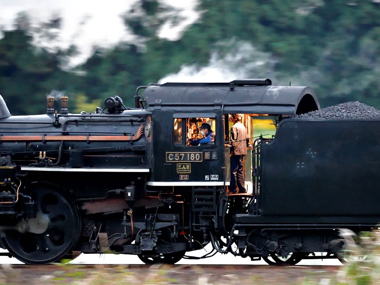上のコマからずっと1/60秒F3.2、ISOオートで撮っていますが、上のコマのISO2500に対して下のコマは機関車がアップになり、相対的に暗い部分が増えたためISO25600になっていました。