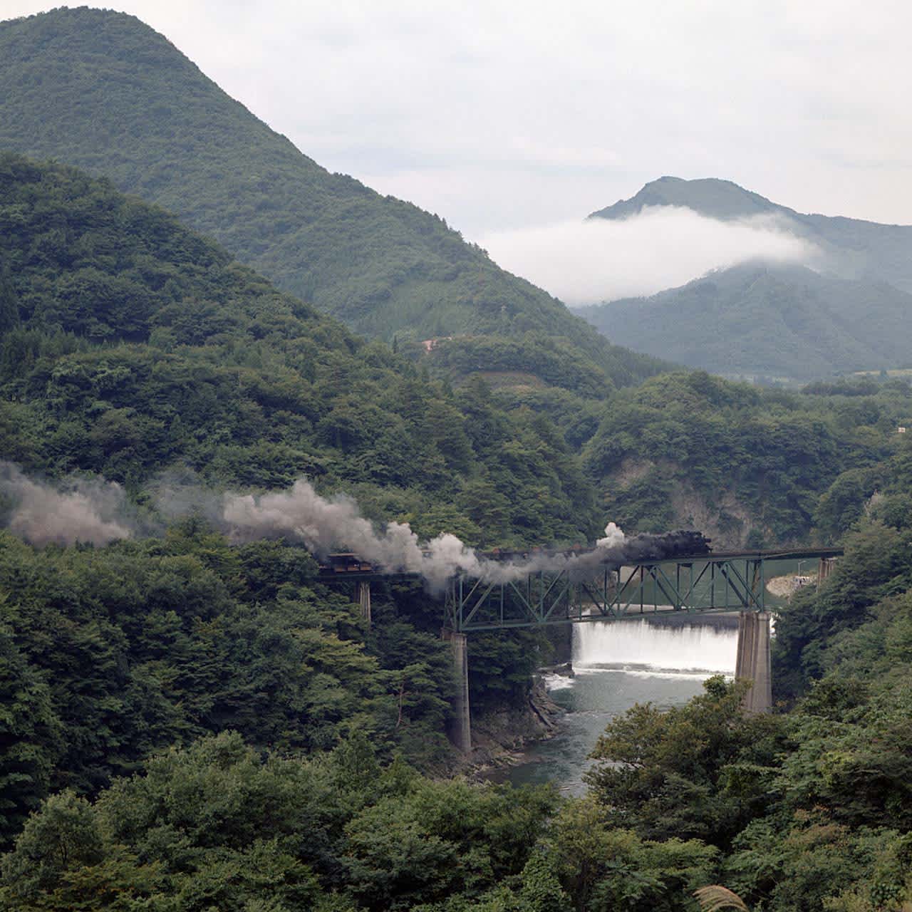 $ 0 0 今日からは再び会津のC11で、昭和49年9月訪問時の2日目です。 2日目(9/22)は、桑原〜湯野上間の第三大川橋梁から撮影開始です。 列車はC11254の牽く貨物1391レ、曇天はまだしも、風向きが悪く煙で編成が隠れてしまったのがちょっと残念でした。 この辺りも現在はダムの中に沈んでしまったのでしょうか... 会津線 桑原〜湯野上 1974年9月22日撮影